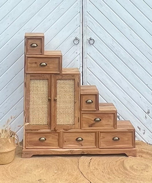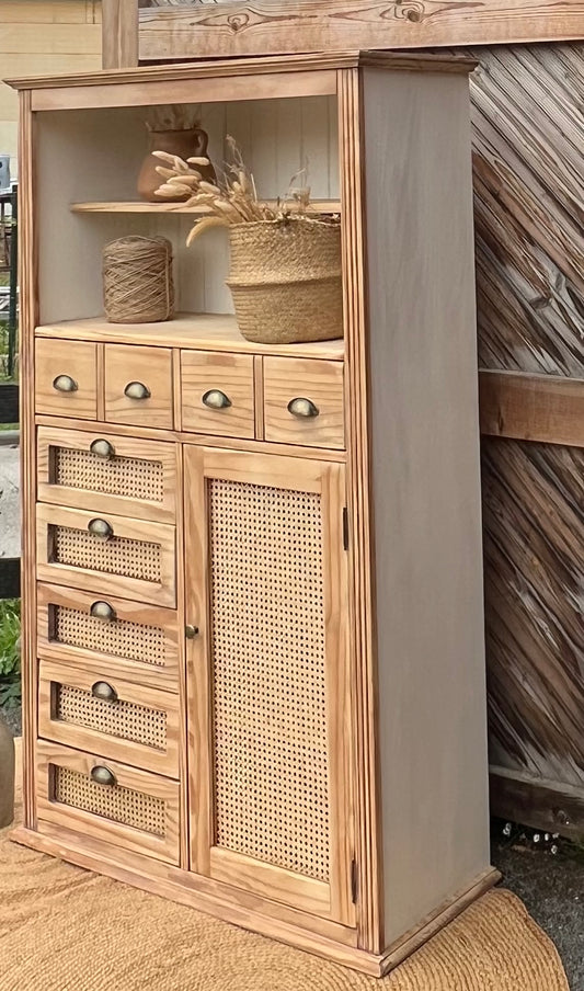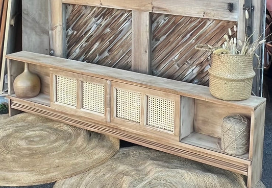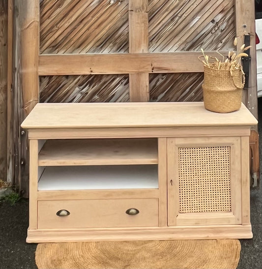 Meuble télé tv enfilade en chêne massif brut et cannage
