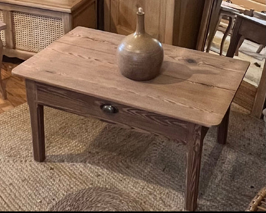 Grande table basse de ferme ancienne en chêne massif brut 2 tiroirs