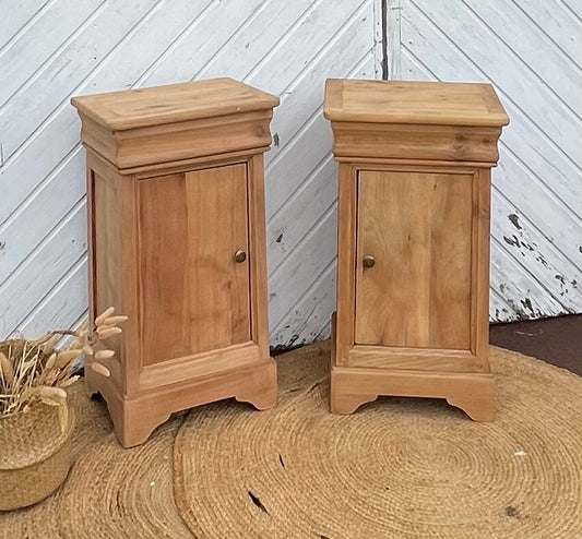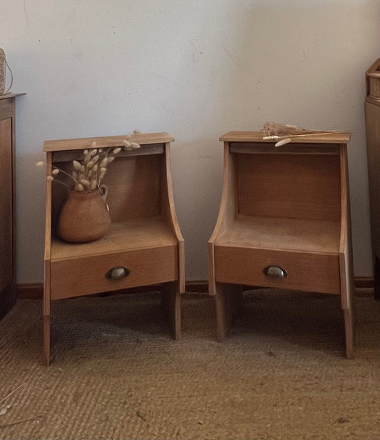 Paire de chevets anciens / tables de nuit vintage années 50 en bois brut - tiroir