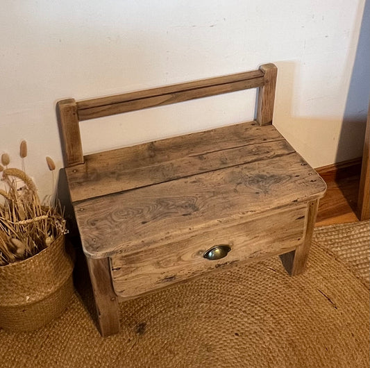 Petite armoire ancienne esprit campagne chic en bois massif brut