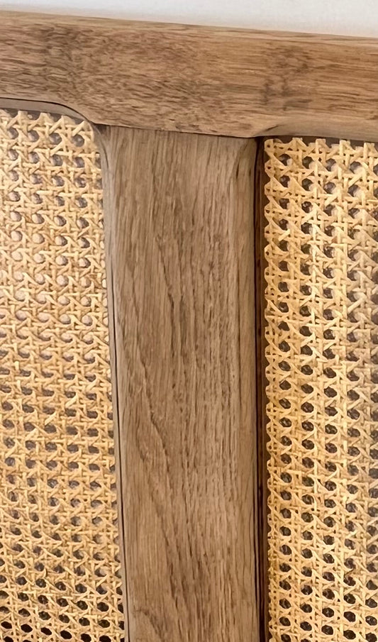 Tête de lit ancienne 1 place en chêne massif brut et cannage