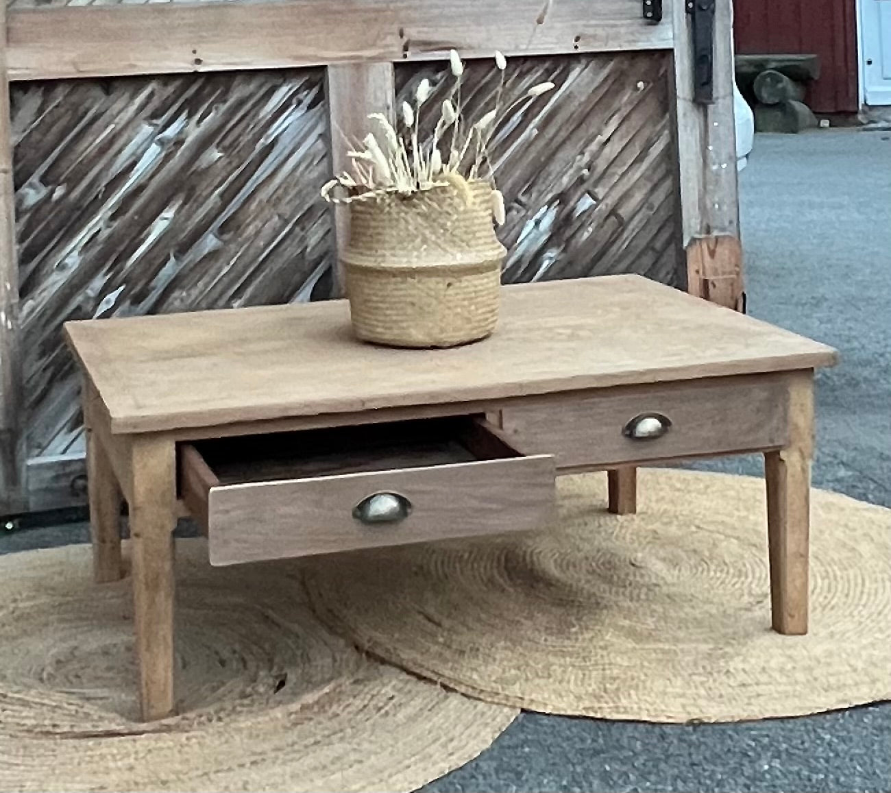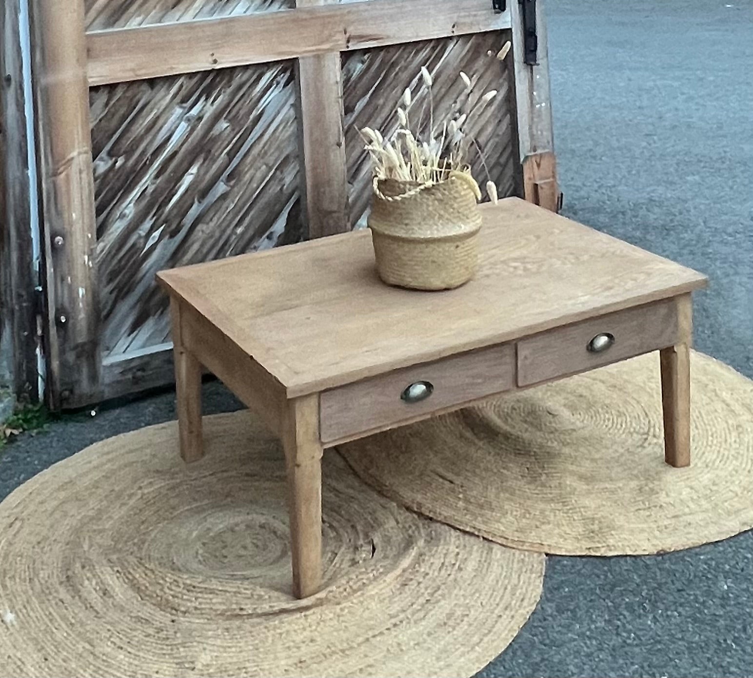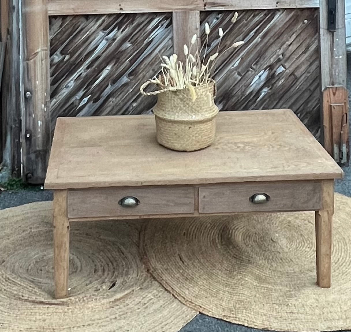 Grande table basse de ferme ancienne en chêne massif brut 2 tiroirs
