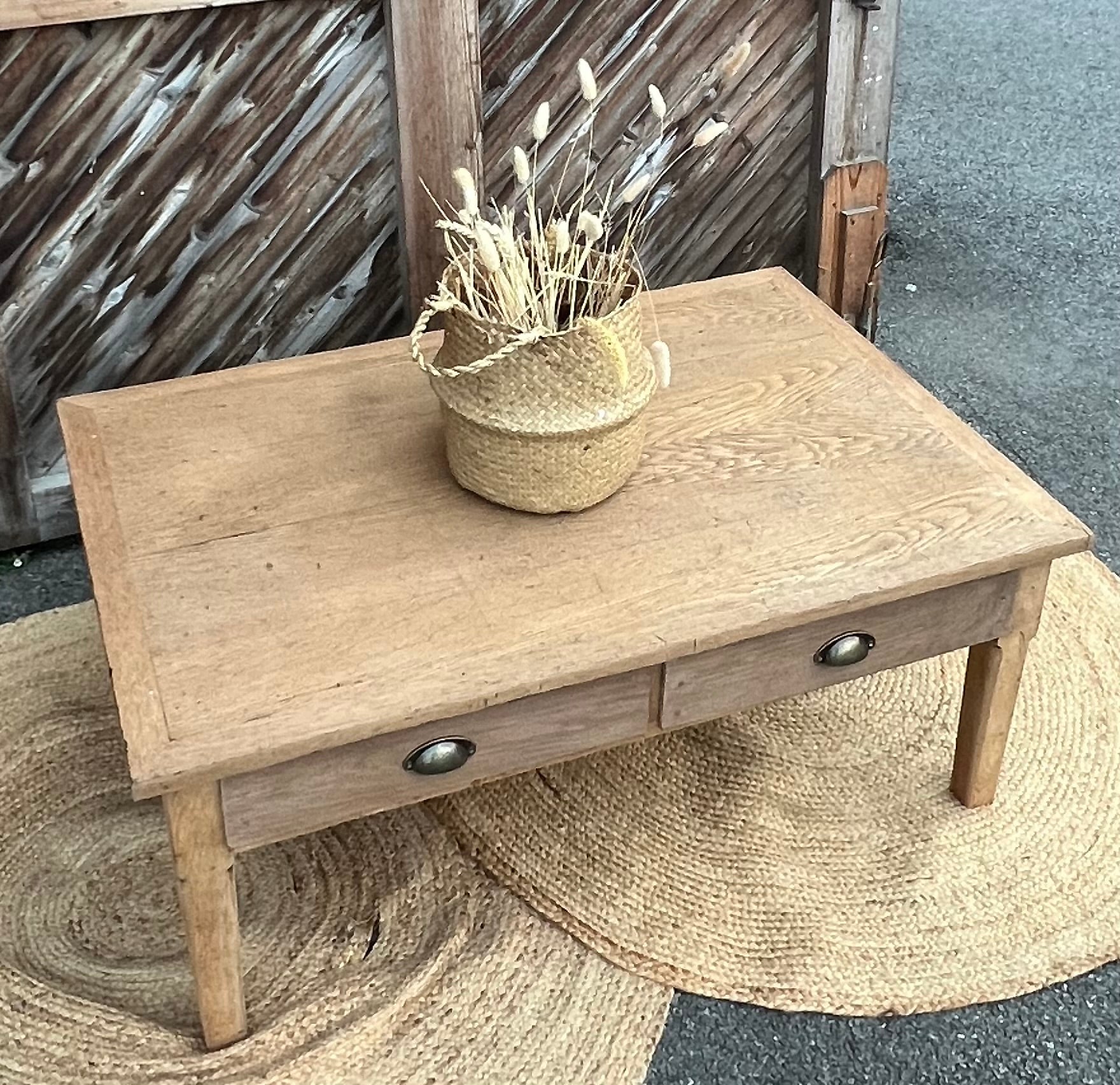 Grande table basse de ferme ancienne 2 tiroirs en chêne massif brut